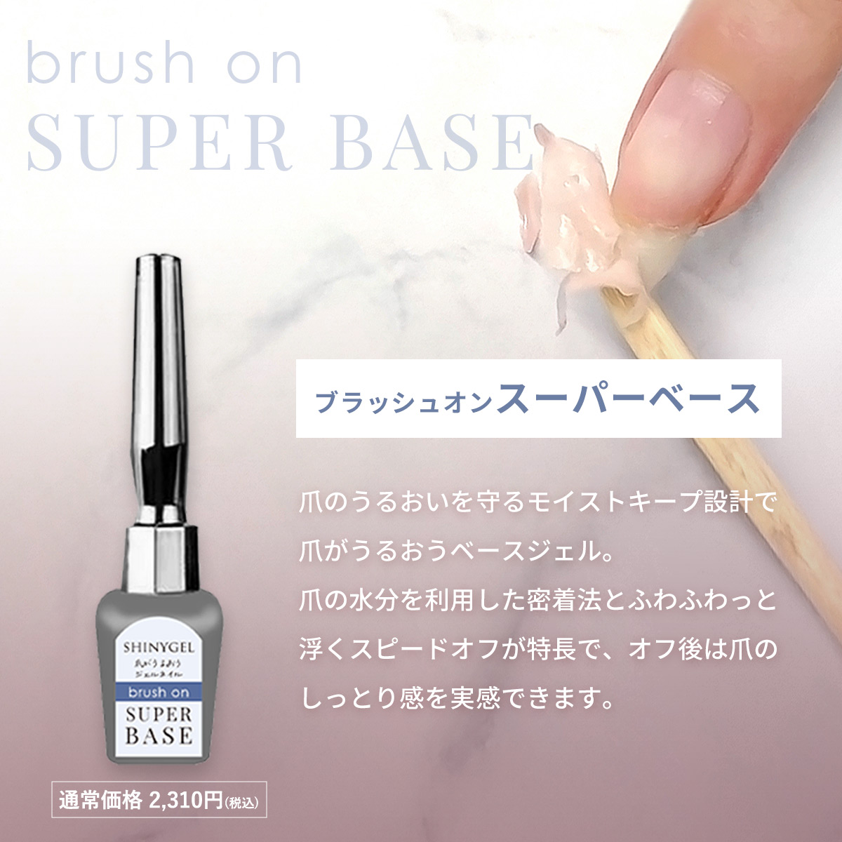 <ブラッシュオンスーパーベース> より爪にやさしく、扱いやすさを考えたベース専用ジェルです。従来のシャイニージェルよりモチが良くなり、オフが驚くほど簡単になりました。 独自の密着手法を採用しているので、酸不使用にもかかわらずガッチリ密着。さらにリムーバーの浸透がしやすい構造ですので、スパッと時短オフ。 ほとんどの方はノンサンディングで使用することができます。 またジェルネイル中は爪の水分を一定に保つ成分が配合されており、オフ後でも自爪をしっとり健康的に保つことが可能です。 <ブラッシュオントップハード> サラッとしたテクスチャーでレベリングも早く、ひと塗りで完璧な仕上がりに。ツヤ・透明度が高く、硬度があるので、モチの良いうるツヤネイルに仕上がります。 理想的な強度で補強にバッチリ◎ 硬化後の硬度はスーパートップよりも硬く、非常に強度があります。 硬さがありながら、ブラッシュオンスーパーベース・スーパーベース・ピールベースとの相性は良く、欠けや割れなどの防止に役立ちます。 ベースジェル、カラージェルを塗って硬化後、ブラッシュオントップハードを塗布して硬化し、拭き取りをして仕上げていただきます。 |