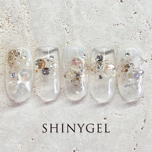 - 薄くフラットカバージェルを全体に塗布し、ラメパウダーをのせ硬化。