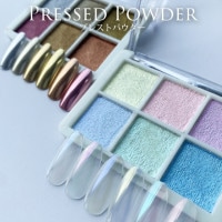 いろいろな色が入ってて、かわいい。 特にオーロラピンクがお気に入りです。ホワイト系のネイルに重ねて使っています。 プレスとパウダータイプで飛び散らいのも便利。